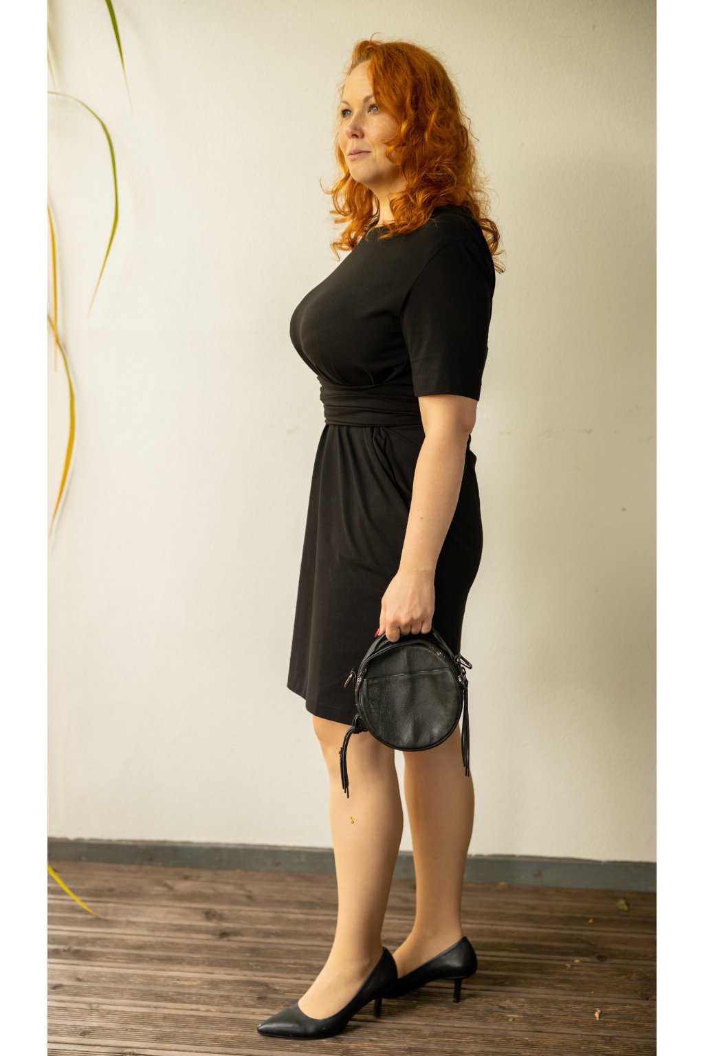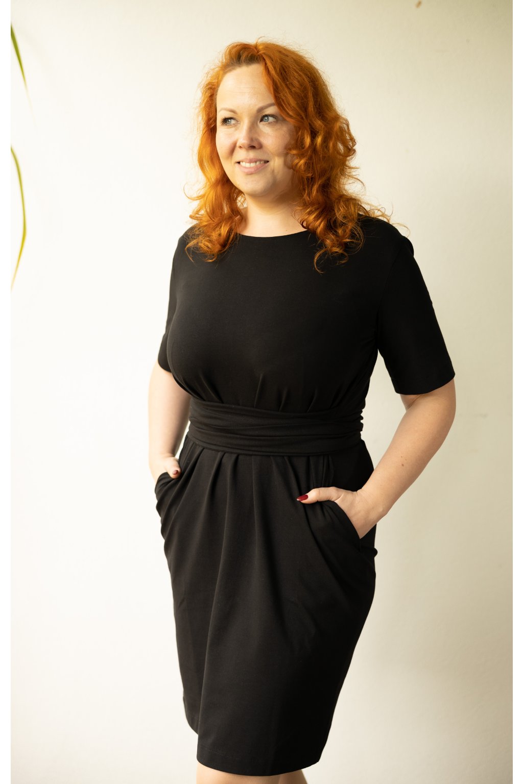 Jednoduché módní zavazovací šaty volnějšího střihu, které přesně vědí, co dokáží. Jsou určeny pro každodenní nošení. Šaty mají postranní kapsy. Dokáží okouzlit, stáhnout pozornost a vyvolat neuvěřitelný obdiv. Jejich střih je uzpůsoben každé postavě. Hledají k sobě ženu, která je vytáhne na procházku se svými kamarádkami nebo do práce. Šaty mají krátký rukáv, délku nad kolena (cca 88cm) a lodičkový výstřih. Kolem boků jsou širší, čímž vynikne úzký pas po zavázání pásku. Pásek můžeme přišít napevno do boků šatů, nebo na jemná poutka volně, takže je můžete nosit i jako volné letní šaty bez pásku typu "oversize".