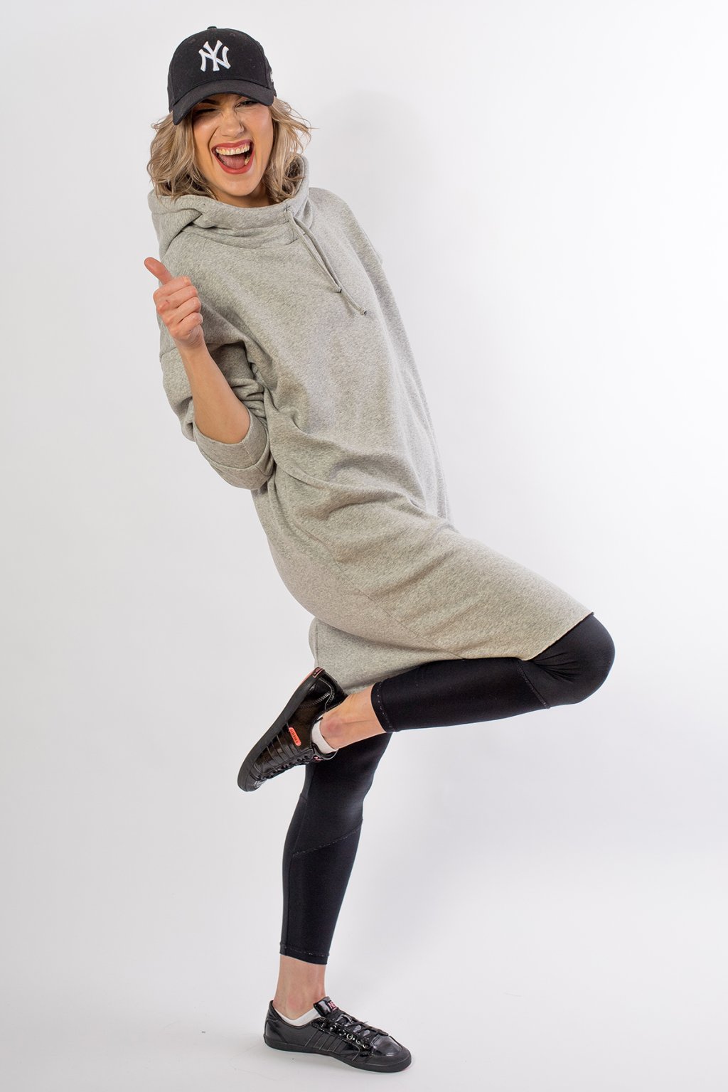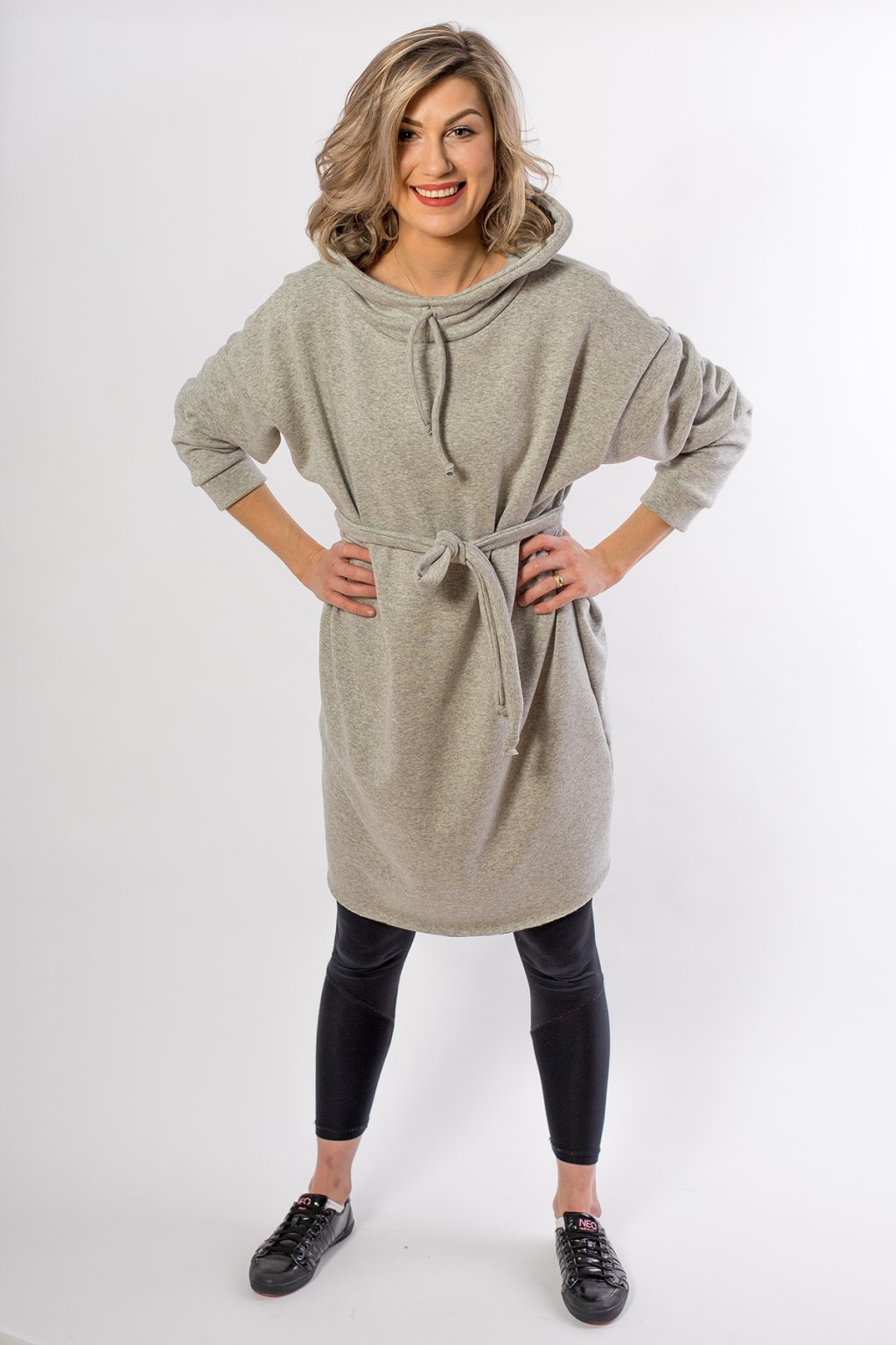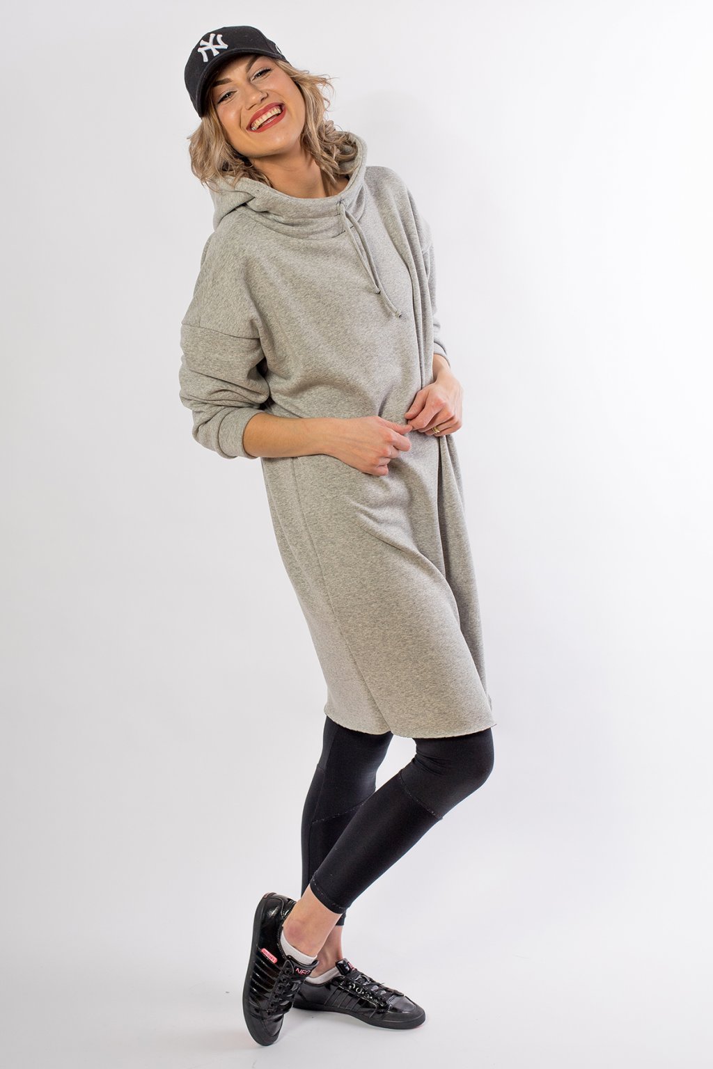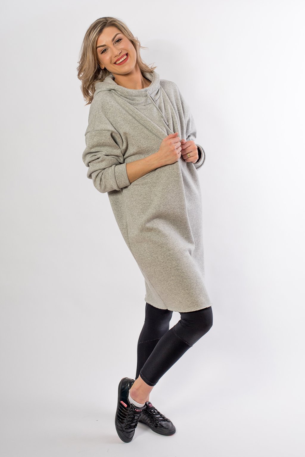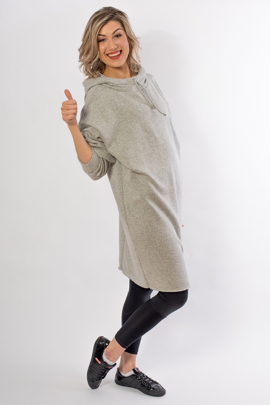 Teplé mikinošaty z exkluzivního Warmkeeperu uvítají zejména zákaznice vyznávající sportovní a mladistvý styl. Mají kapuci a dlouhý rukáv, který si můžete vykasat. Spodní délka je módně nezapravená, mikinošaty mají zevnitř krásnou kontrastní stranu připomínající kožíšek a opravdu zahřejí i ve velmi chladném počasí. Šaty se hodí k legínům, punčochám i na úzké kalhoty či džíny. Efektní i hřejivá kapuce má zepředu střih se stojáčkem. Kapuce je dvojitá. Šaty jsou ve velmi volném střihu, velmi mírně se zúžují k délce. Rukáv je zapraven do manžety. Spodní nezapravený lem se může lehounce zkroutit, a tím ukážete kontrastní vnitřní kožíšek.