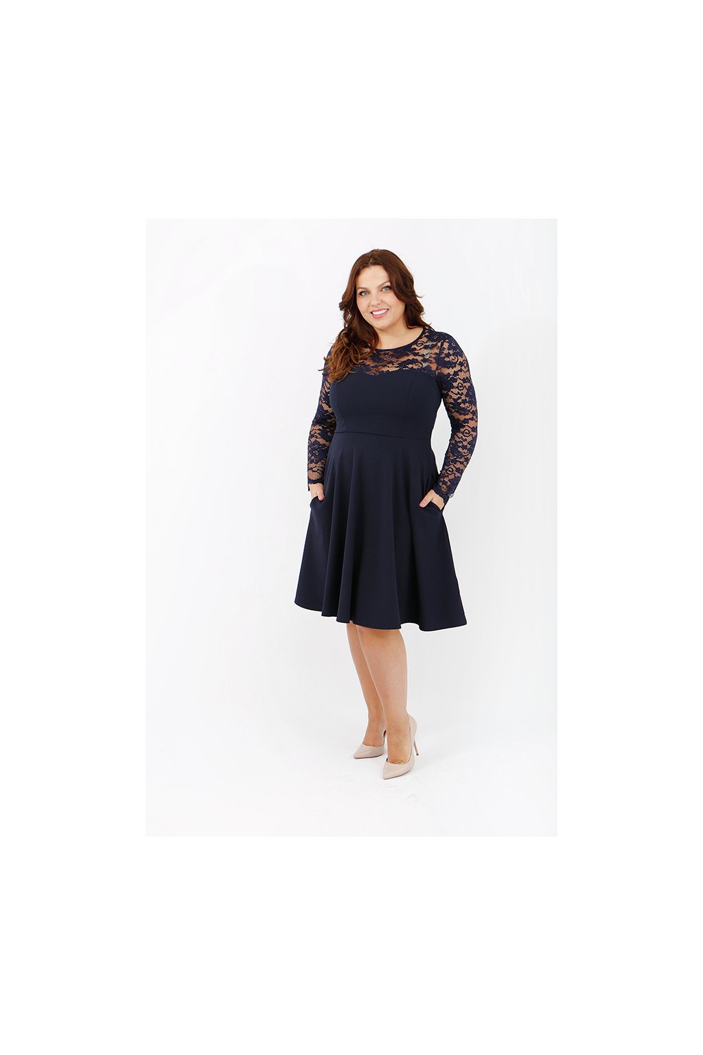 Krajkové elegantní šaty tmavě modré barvy jsou navrženy tak, aby zdůraznily křivky na všech správných místech. Tyto šaty přesně ví, jak okouzlit, stáhnout pozornost a vyvolat obdiv. Hledají k sobě dámu na úrovni. Tu, která je vytáhne na ples, firemní večírek nebo na schůzku s neobyčejným mužem. Co Ti za takovou vycházku slíbí? Hebké pohodlí a sebevědomí. Šaty, které díky krajkovému kontrastu podtrhnou Tvou ženskost. Jsou vyrobeny z luxusní směsi krepové látky v kombinaci s krajkou. Nádherný střih a elegantní celokrajkové rukávy dodávají šmrnc. Přes své řešení jsou velice příjemné na pokožce. Délka pod kolena umocňuje špetku noblesy. Tyhle šaty hovoří za vše, protože Tvá silueta zezadu dokáže zapříčinit nejednu vášnivou představu muže. Jak dlouho jim chceš ještě odolávat?