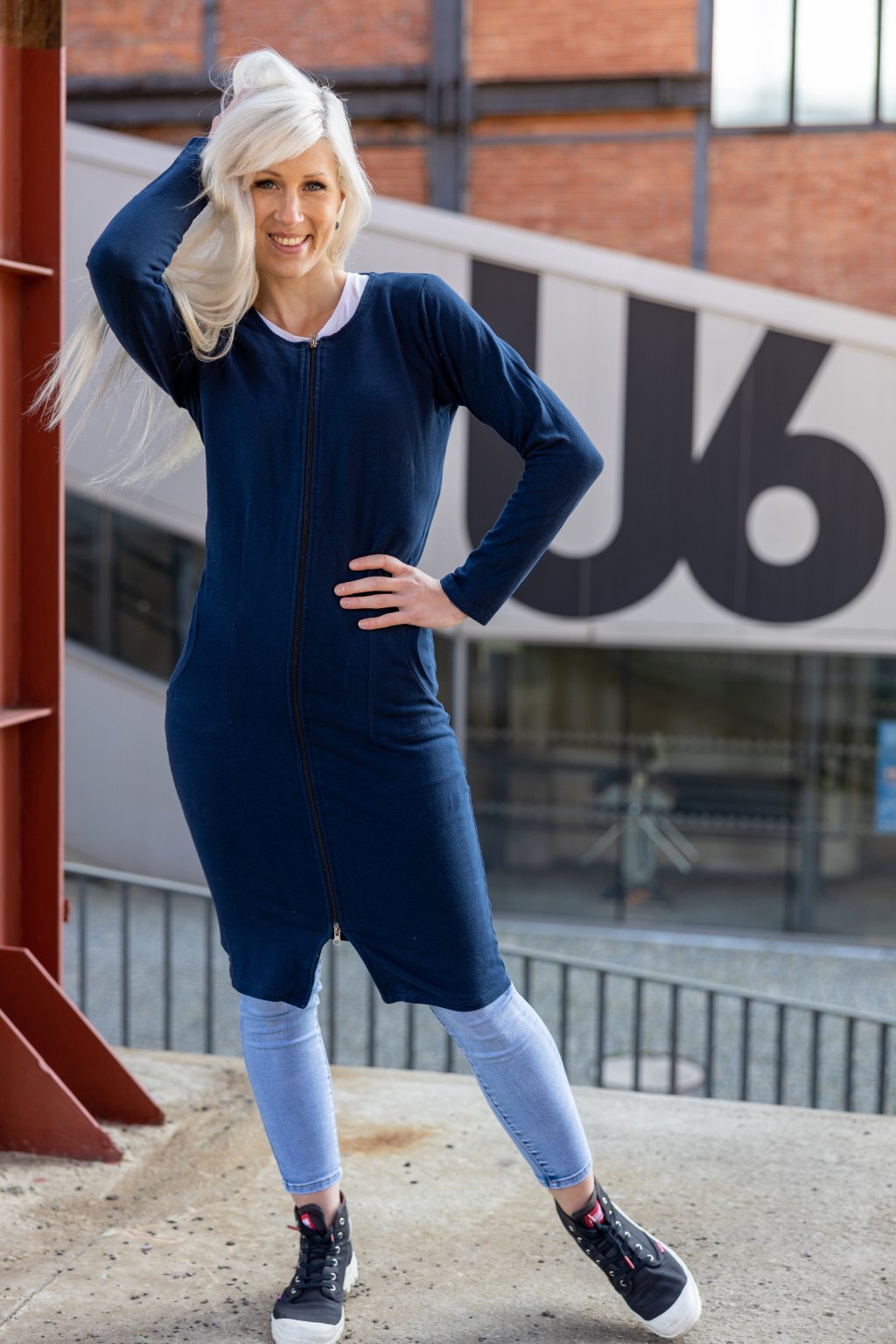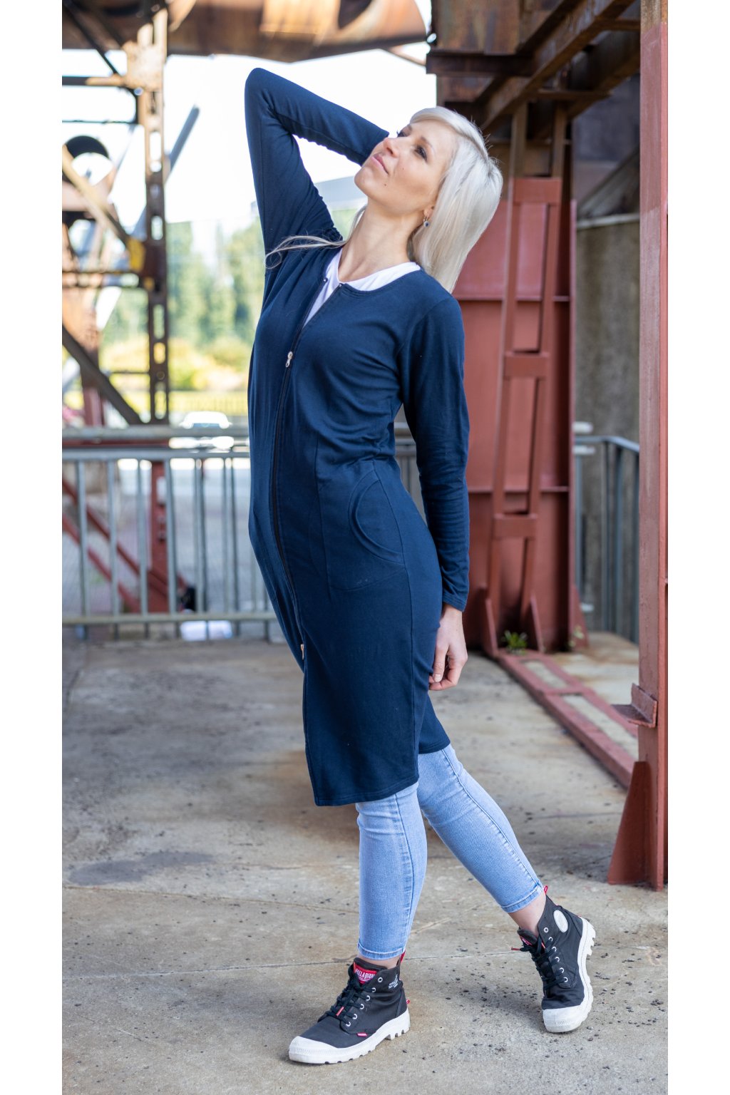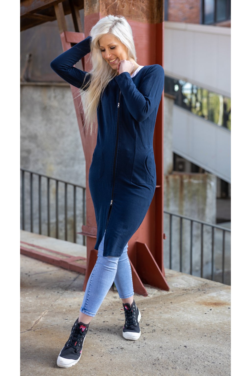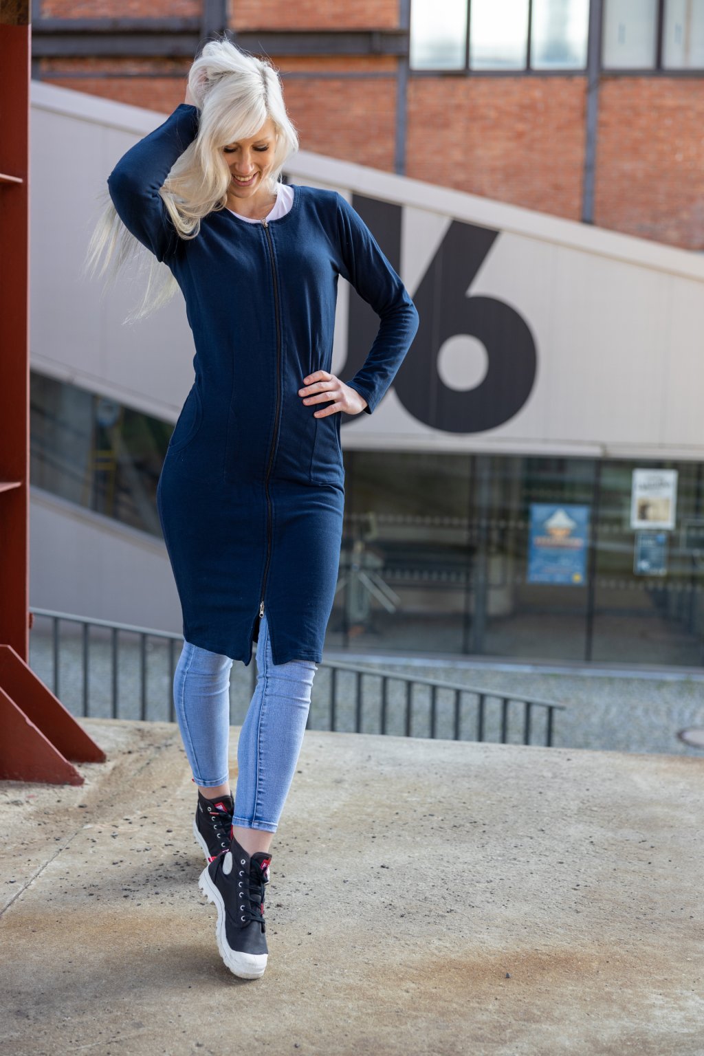 Jednoduché elegantně-sportovní šaty propracovaného střihu z pružné teplákoviny, které opravdu skvěle sedí. Jsou určeny pro každodenní nošení, zároveň mají v sobě prvek elegance díky osvědčenému střihu. Středem předního dílu je oboustranný zips.