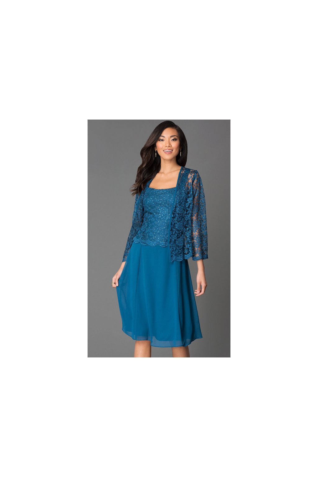 Krajkový motiv na přední straně topu i celokrajkový kabátek působí velice žensky. Díky tomu získaly slavnostnější a romantičtější ráz. Zejména pro plnoštíhlé ženy je tento tento model velmi oblíbený. Tyto šaty mají širší ramínka, díky nim ti budou stabilně sedět a odpadne jejich neustála kontrola.