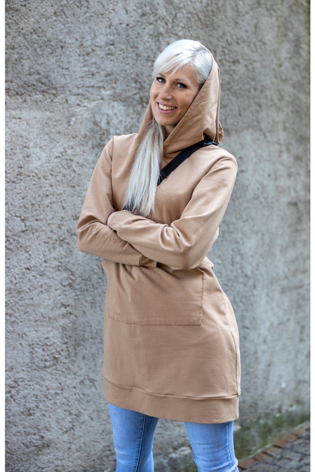 Má téměř celoroční využití. Oceníte ji na podzim, v zimě, je vhodná na chladnější jarní dny nebo i v létě. Jelikož je v prodloužené délce, můžete ji nosit buď jako delší mikinu na užší kalhoty a džíny, tak i jako šaty - v chladnějších dnech doplněné punčocháči či leginami.