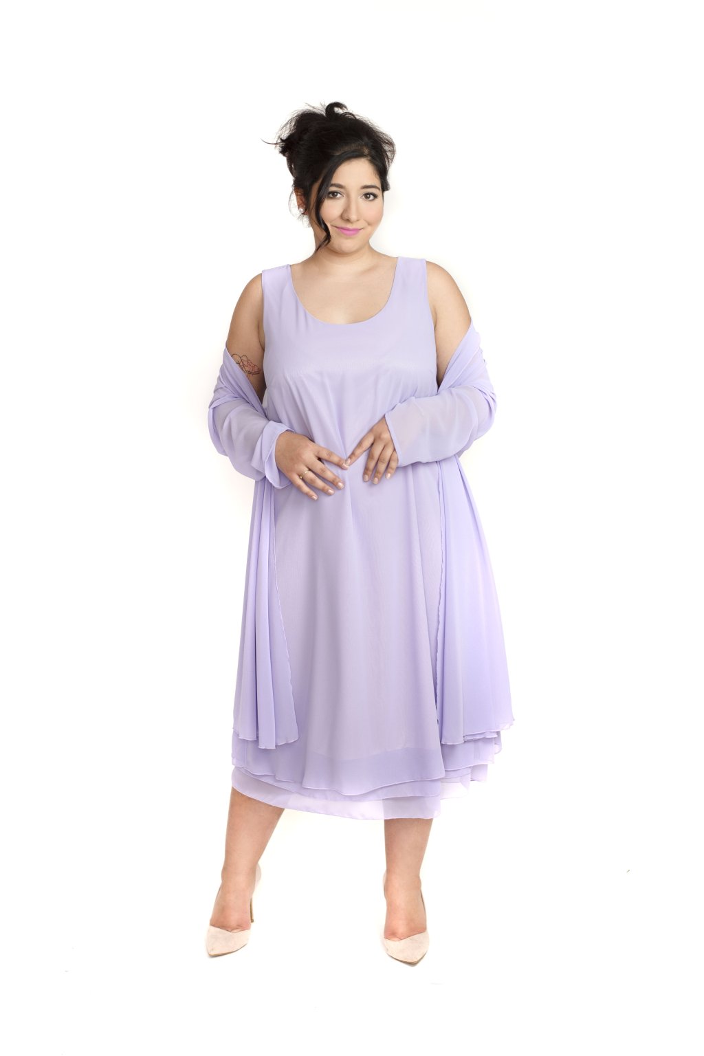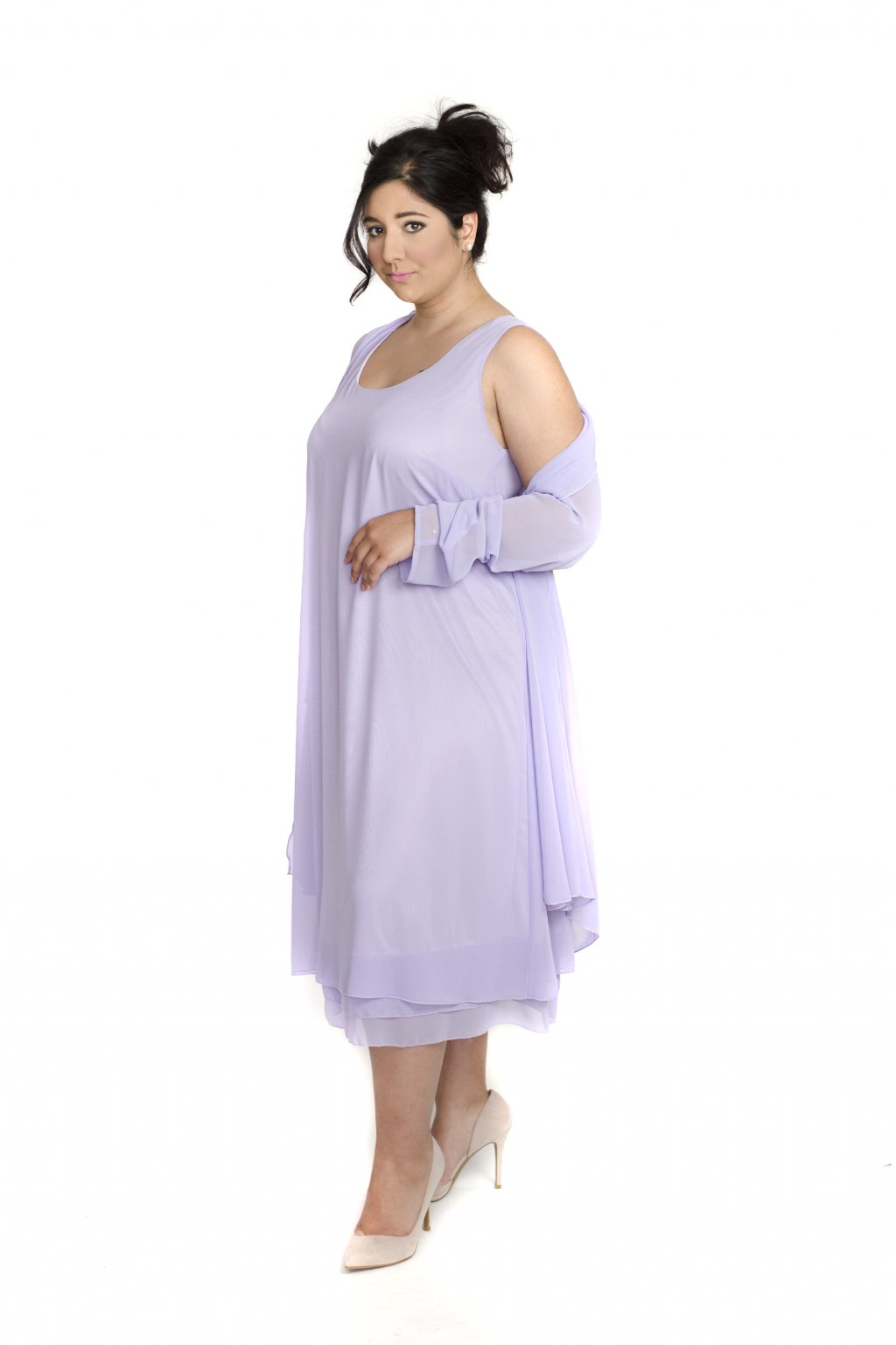 Krásné společenské šaty ocení ženy plných křivek, které chtějí vypadat elegantně. Kostýmek se skládá z kabátku a šatů. Tento kostýmek je velice pohodlný a je tedy ideální volbou, chcete-li vypadat decentně a přitom působit uvolněným dojmem.
